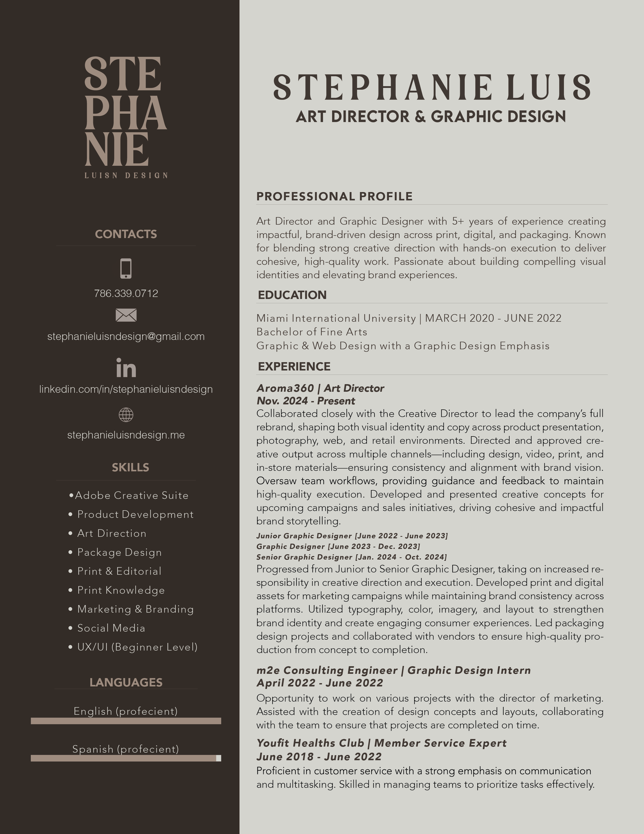 Born and raised in Costa Rica, I’m a Miami-based Art Director and Graphic Designer focused on making a lasting impact through thoughtful, brand-driven work.
